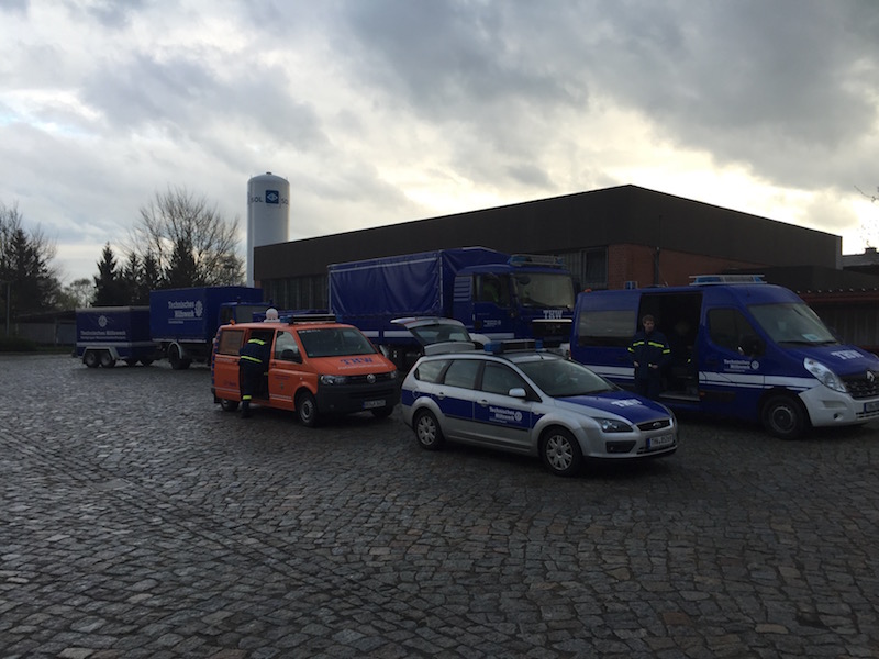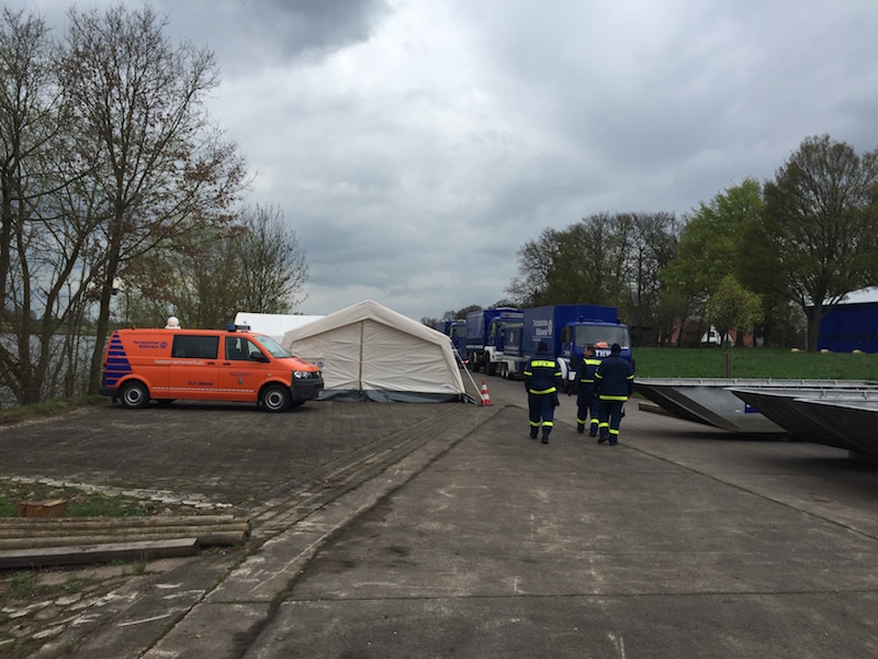 Nachdem sich die Helfer am Freitagabend im Bereitstellungsraum in Verden mit ihren Fahrzeugen und Hochleistungspumpen trafen, ging es nach einem kurzen „Briefing“ über die aktuelle Lage in dem Land auf den Weg zur Barmenischen Grenze. Vor dem Grenzübergang wurden Fahrzeuge, Pumpen sowie das Gepäck der Helferinnen und Helfer vom Zoll überprüft.