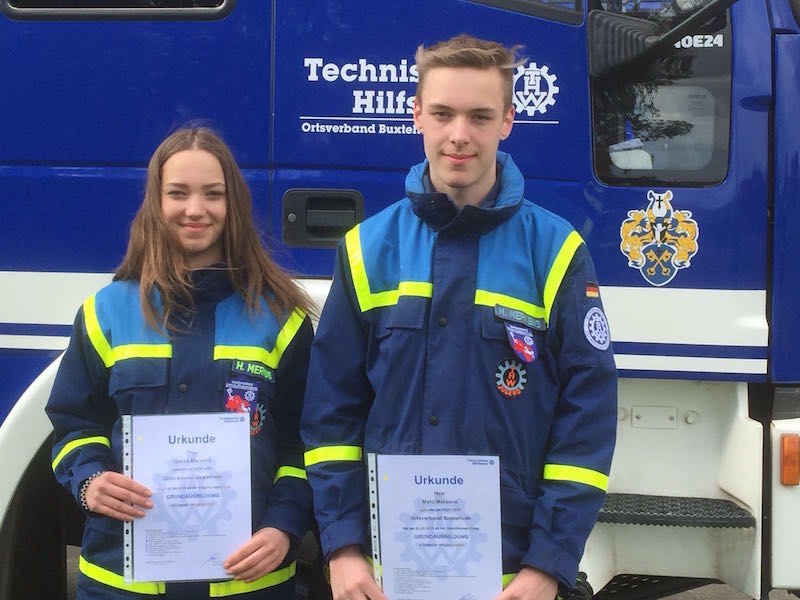 23.04.2016 - In nur vier Monaten haben unsere beiden Helferanwärter am Wochenende die Grundausbildung (Basisausbildung I) erfolgreich abgeschlossen. Gemeinsam mit 13 anderen HelferanwärterInnen aus den Ortsverbänden des Geschäftsführerbereiches Buxtehude legten unsere beiden Helfer eine schriftliche und praktische Prüfung im Ortsverband Rotenburg ab.