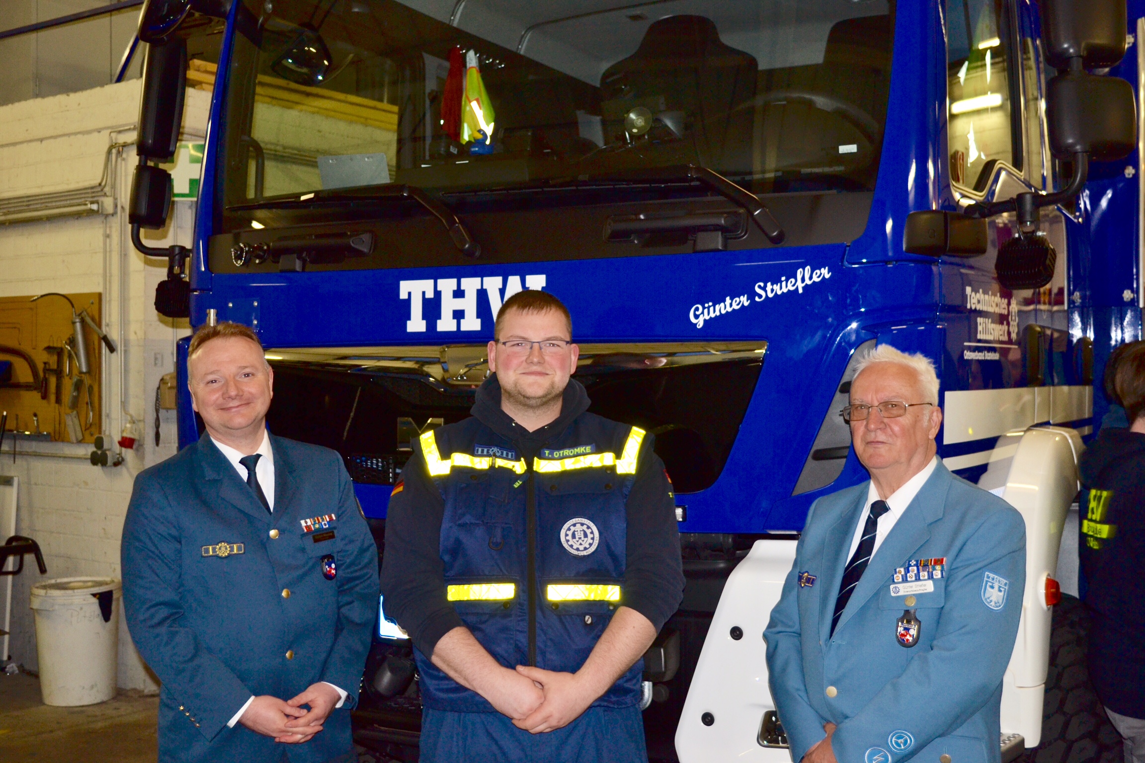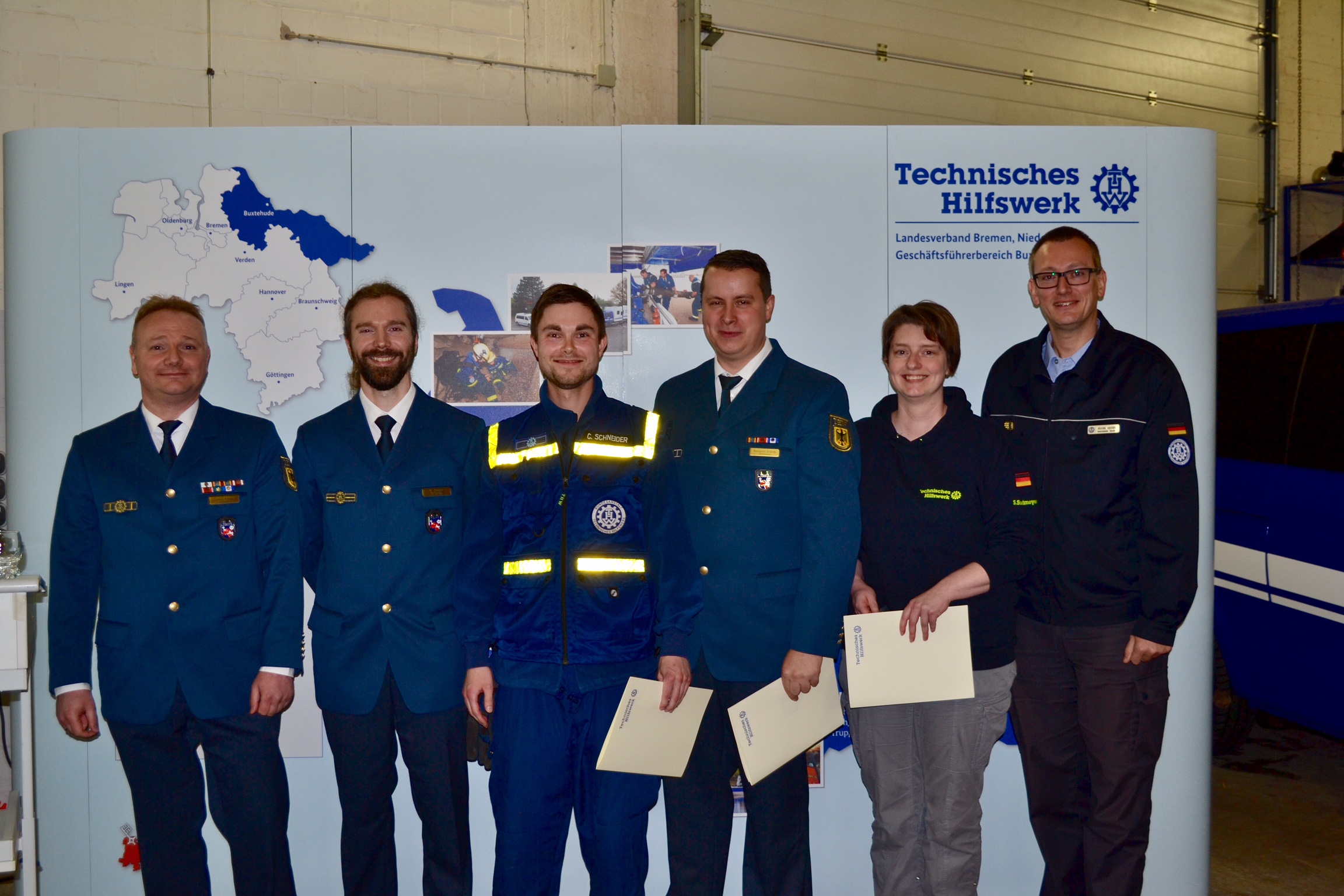 Benjamin Grabow (Beauftragter für Öffentlichkeitsarbeit) erhielt vom Referatsleiter Einsatz und stellvertretenden Landesbeauftragten des THW Landesverbandes Bremen, Niedersachsen das Helferzeichen in Gold sowie das Auslandsabzeichen für die Teilnahme am Einsatz in Bosnien in 2014. Sandy Sudmeyer (Ortsjugendbeauftragte) erhielt das Helferzeichen in Gold mit Kranz, während sich Christoph Schneider über eine Urkunde für seine 10-jährige Mitgliedschaft im THW freuen konnte.
