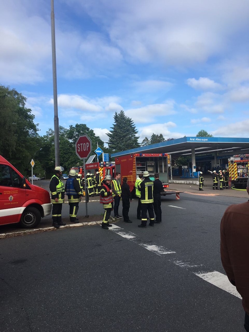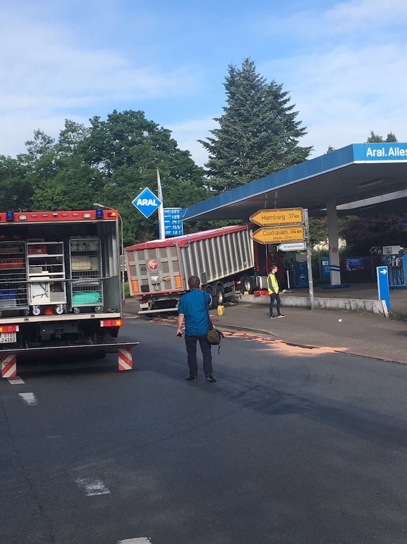 01.06.2017 - Im morgendlichen Berufsverkehr fuhr ein LKW-Sattelzug aus bisher unbekannten Gründen beim Abbiegen vom Zubringer der Bundesstraße 73 in die Tankstelle an der Apensener Straße. Der LKW kam kurz vor einer Zapfsäule zum Stehen und beschädigte zuvor einem PKW, der gerade betankt wurde. Die Fahrerin konnte sich im letzten Moment durch einen Sprung zur Seite in Sicherheit bringen.