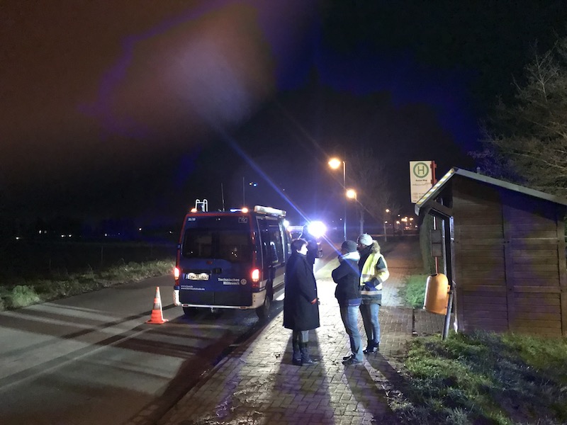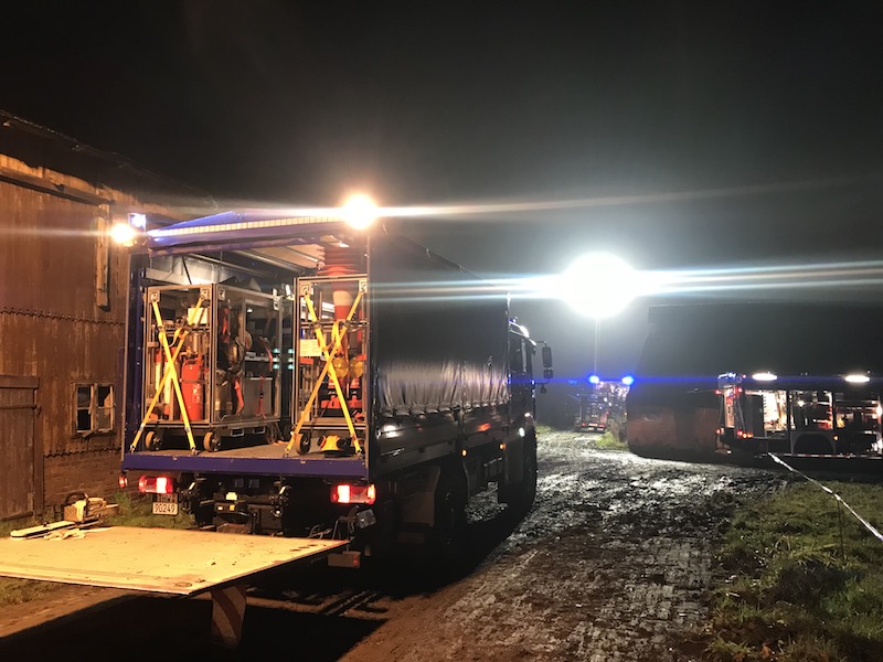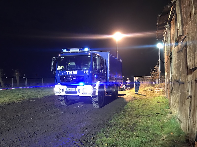 01.12.2017 – Nachdem es zu einer Verpuffung durch Arbeiten am Tank eines Treckers in einer Scheune kam, lösten um kurz nach halb acht am Abend die Melder unserer Helferinnen und Helfer aus. Bereits zehn Minuten nach der Alarmauslösung machte sich das erste Fahrzeug auf den Weg zur Einsatzstelle nach Rübke, um die Lage zu erkunden. Erst am Einsatzort wurde ersichtlich, dass es sich um eine Übung handelte. Kurz darauf trafen weitere Fahrzeuge unseres Ortsverbandes an der Einsatzstelle ein. Ziel der Übung war es, die vier vermissten Personen zu finden und zu retten sowie die großflächige Einsatzstelle auszuleuchten.