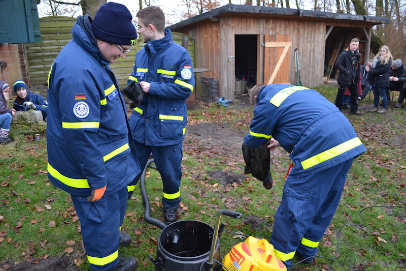 Während sich unsere Führungskräfte und der Zugtrupp am Vormittag durch unseren Ortsbeauftragten Carsten Minnerup und Zugtruppführer Timo Krempien eine kleine Auffrischung in den Themengebieten „Wie führe ich eine Lagekarte?“, „Welche relevanten Dinge müssen im Einsatztagebuch aufgeführt werden?“ und „Welche Taktischen Zeichen stehen den Führungskräften zur Verfügung, um eine Einsatzstelle bildlich darzustellen?“, machte sich eine Gruppe aus Helferinnen und Helfern auf den Weg nach Harsefeld, um einen mit Wasser vollgelaufenen Keller im Gebäude der Pfadfinder „Stamm Horse“ leer zu pumpen. Mit Hilfe einer MAST-Pumpe, die 800 Liter in der Minute pumpt, sowie eines Nasssaugers, konnten sie den Keller innerhalb weniger Stunden trocken legen.