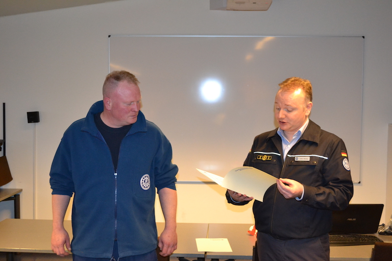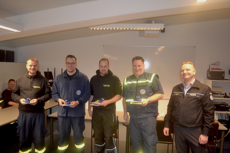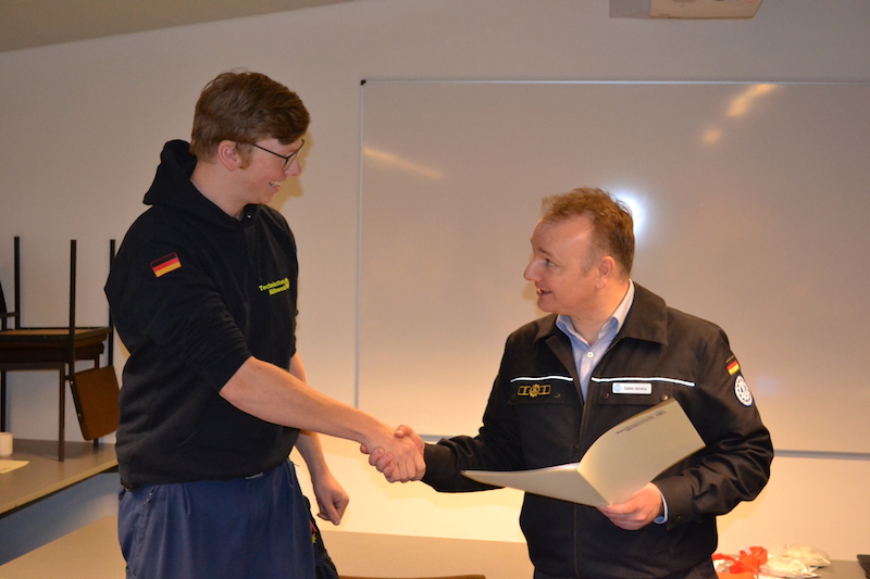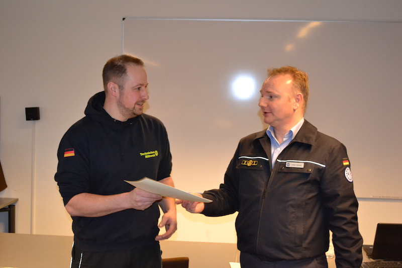 Nach der Mittagspause führte unser Ortsbeauftragter Carsten Minnerup drei Berufungen durch und übereichte eine kleine Aufmerksamkeit des Ortsverbandes an mehrere Helfer/innen, die in der vergangenen Zeit Eltern geworden sind. Birger Thomßen wurde erneut zum Schirrmeister und Michael Marx zum Fachberater der Stufen 1 und 2 berufen. Jonas Bergmann freute sich über seine offizielle Berufung zum Truppführer der 2. Bergungsgruppe.