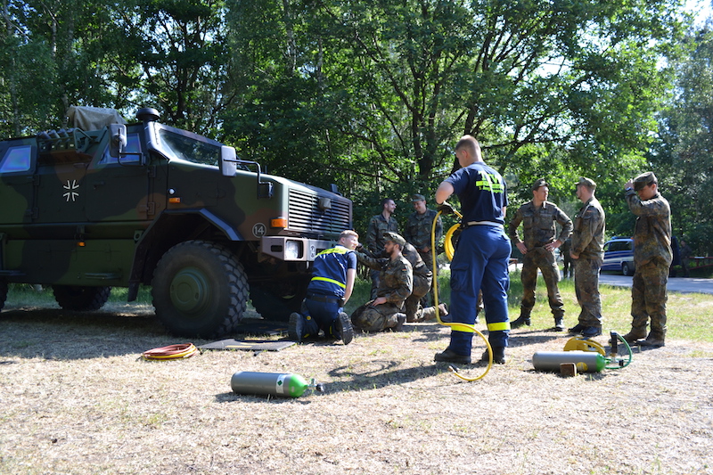 Ein großes Dankeschön richtet sich an die Kommandantur der Logistikschule für die Bereitstellung der Unterkünfte und des Übungsgeländes sowie an die Soldatinnen und Soldaten für die sehr gelungene Ausbildung, die sehr professionelle Unterweisung im Gelände und insbesondere der kleinen Einblicke in ihre Fahrzeuge.