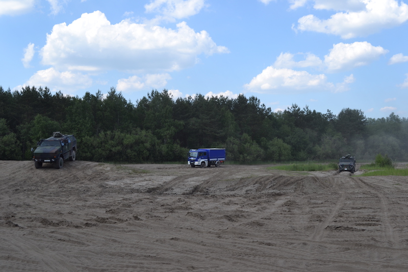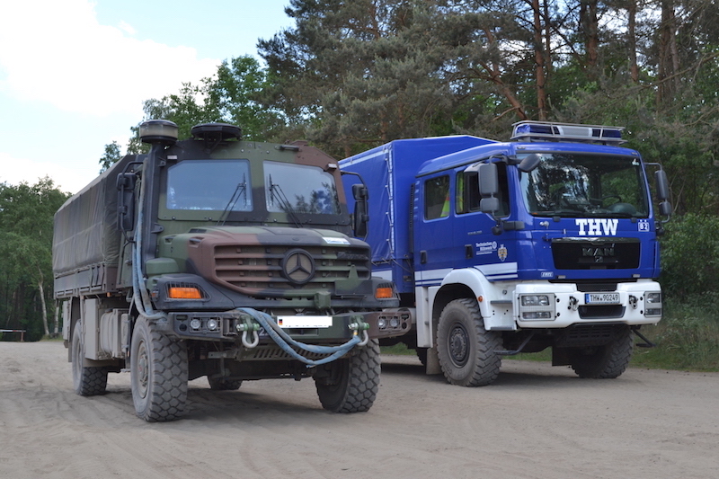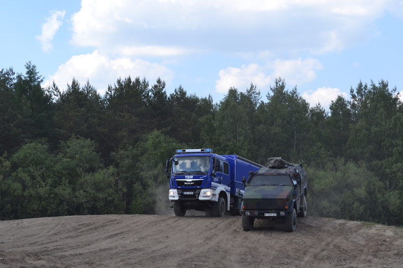 Das Gelände „lesen und verstehen“ – so lautete immer wieder ein eindringlicher Satz der Ausbilder. Um mögliche Schäden an Fahrzeugen, deren Ladung und der Besatzung zu vermeiden, mussten die Fahrer von Bundeswehr und THW die zu absolvierende Fahrstrecke genau einschätzen und immer wieder abwägen können, z.B. welche Geschwindigkeit die Richtige ist, welcher Anfahrtswinkel korrekt ist, welche Antriebssperren man vorher einlegen muss, u.v.m.