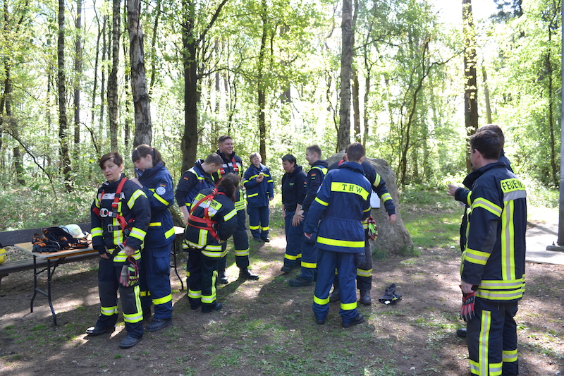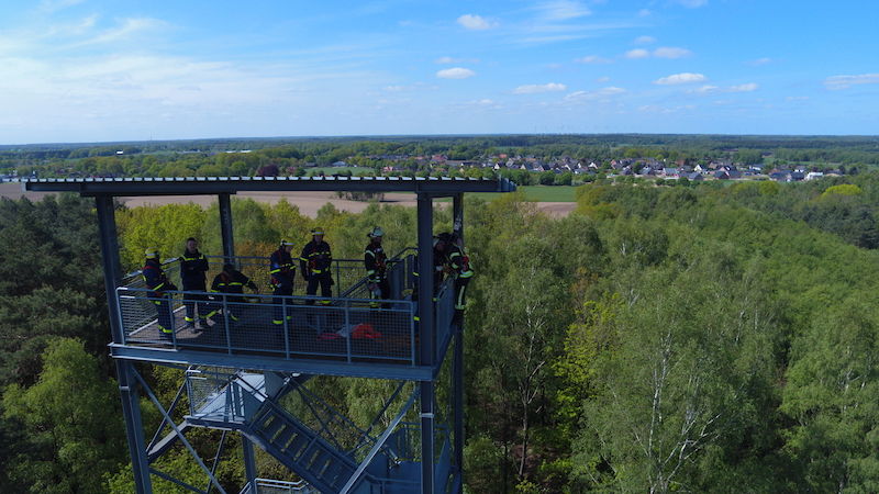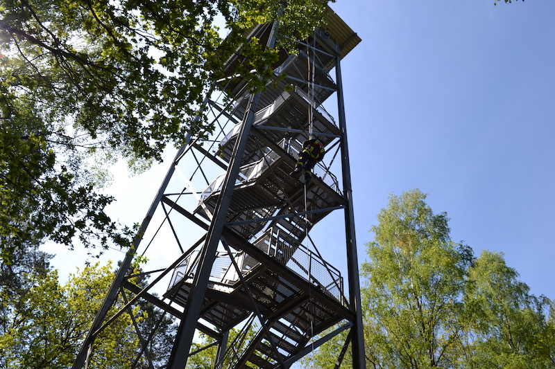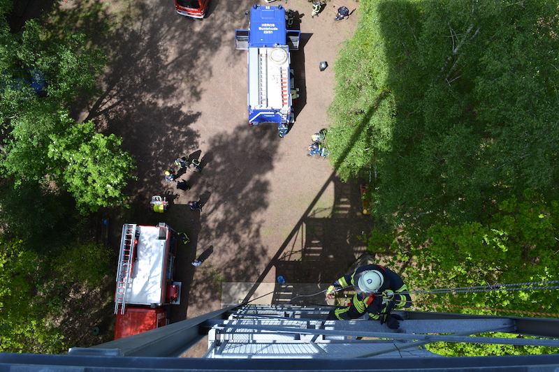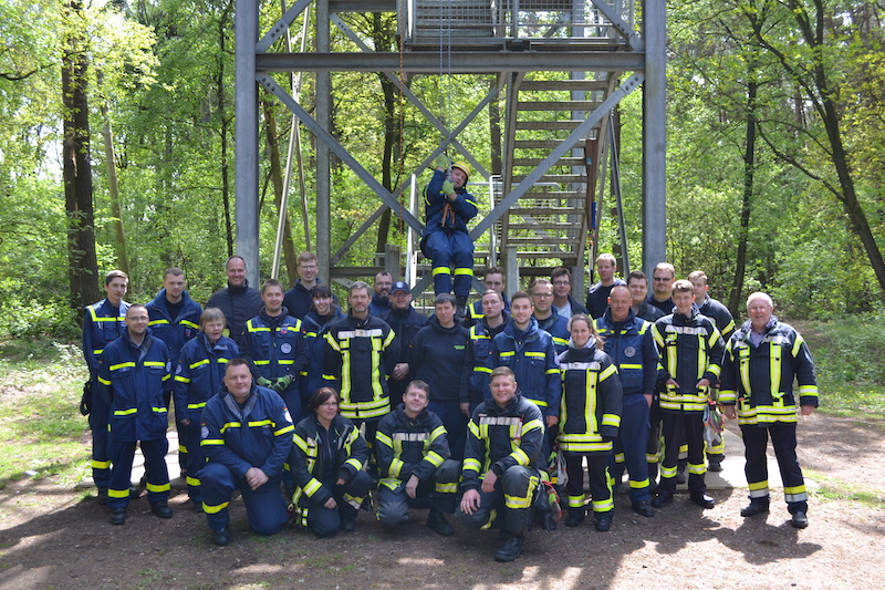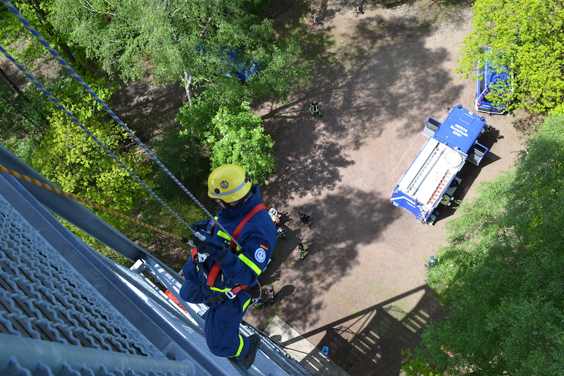 11.05.2019 - Gemeinsam mit der Ortsfeuerwehr Ottensen übten wir auf unserem Mai-Dienst das Abseilen aus großer Höhe. In Sauensiek trafen sich unsere Helfer/innen mit den Kameradinnen und Kameraden aus Ottensen am 25 Meter hohen Aussichtsturm auf dem Litberg.